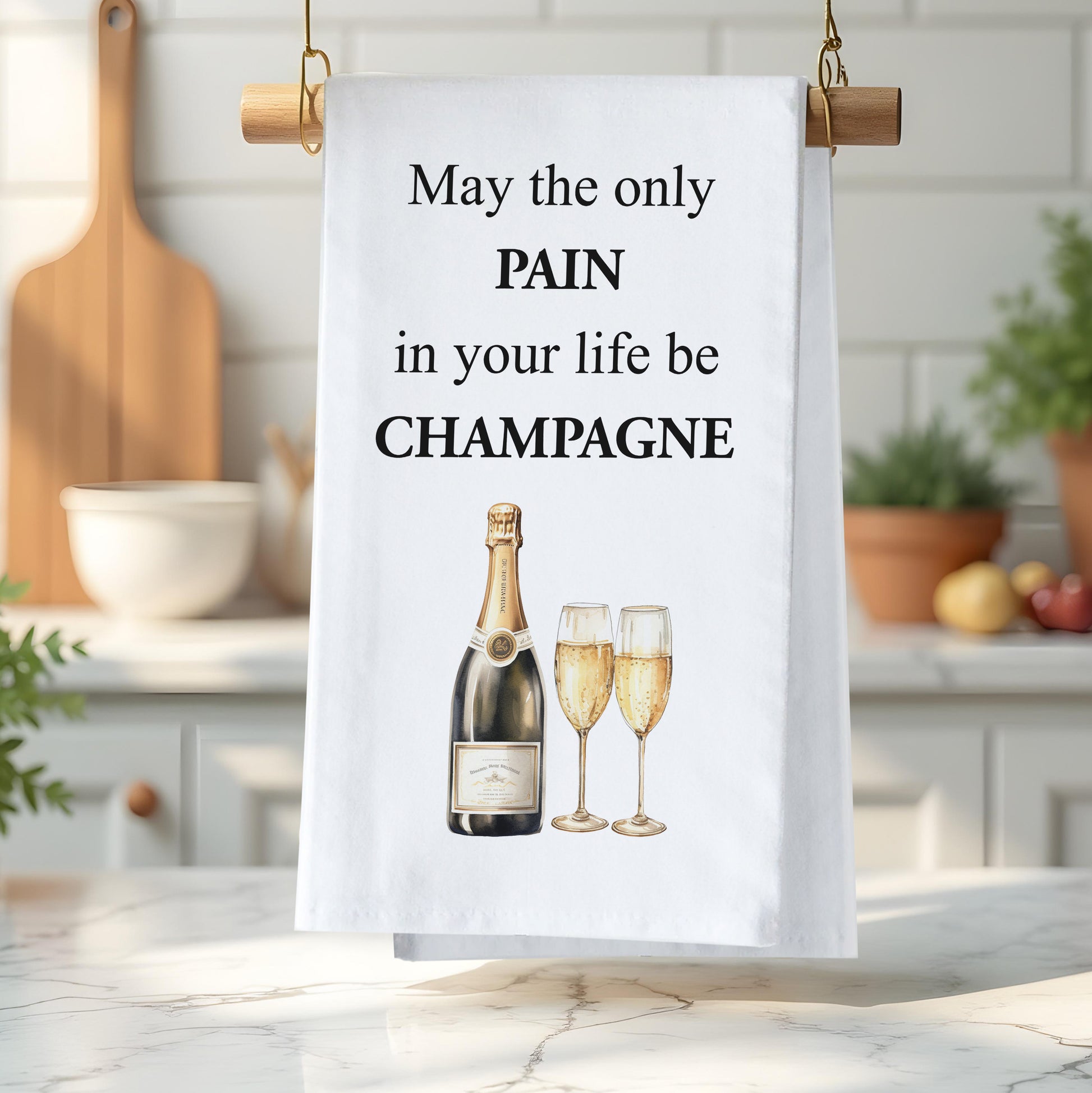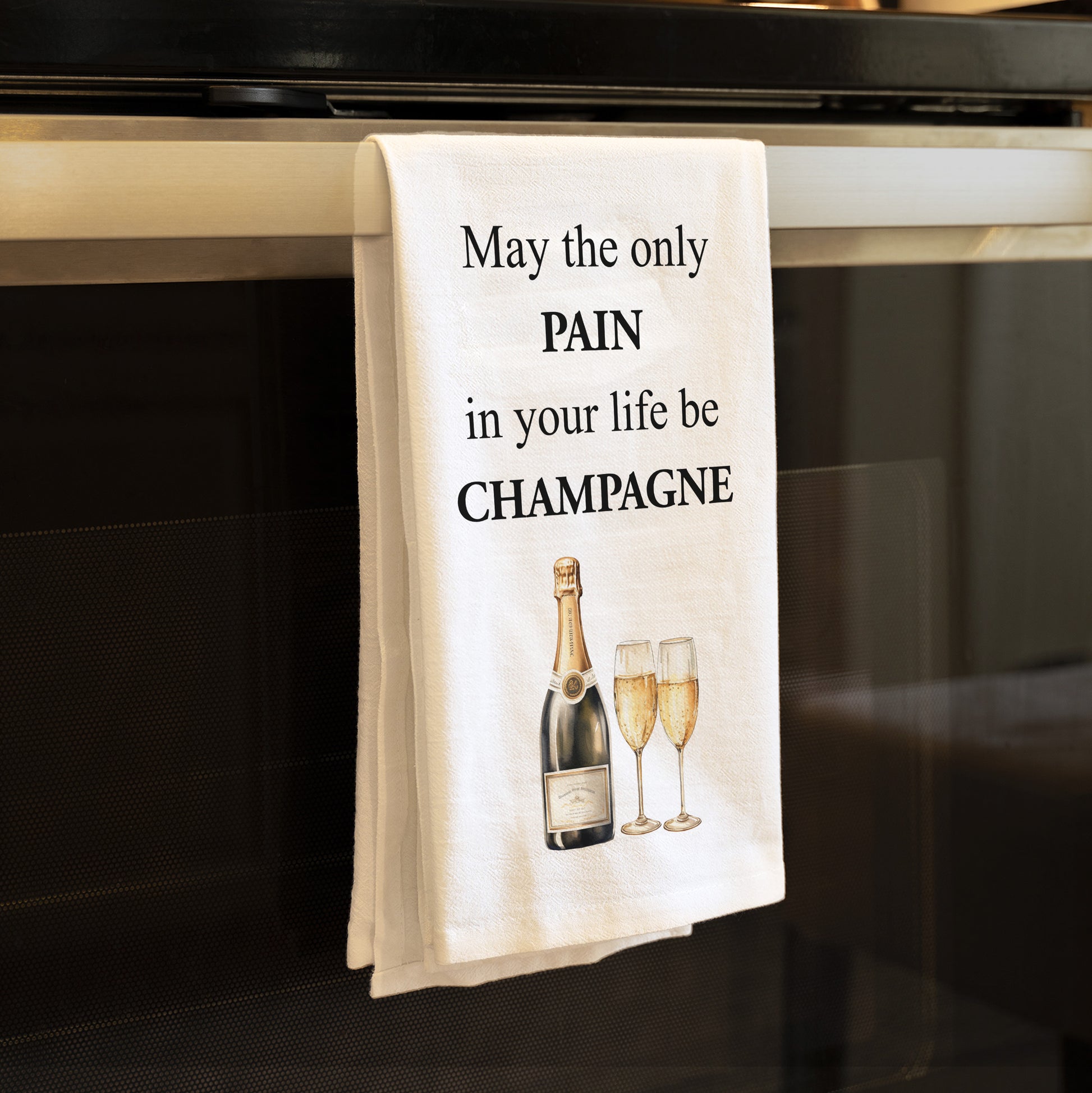 Funny Champagne Kitchen Towel - May the only pain in your life be Champagne Flour Sack Towel