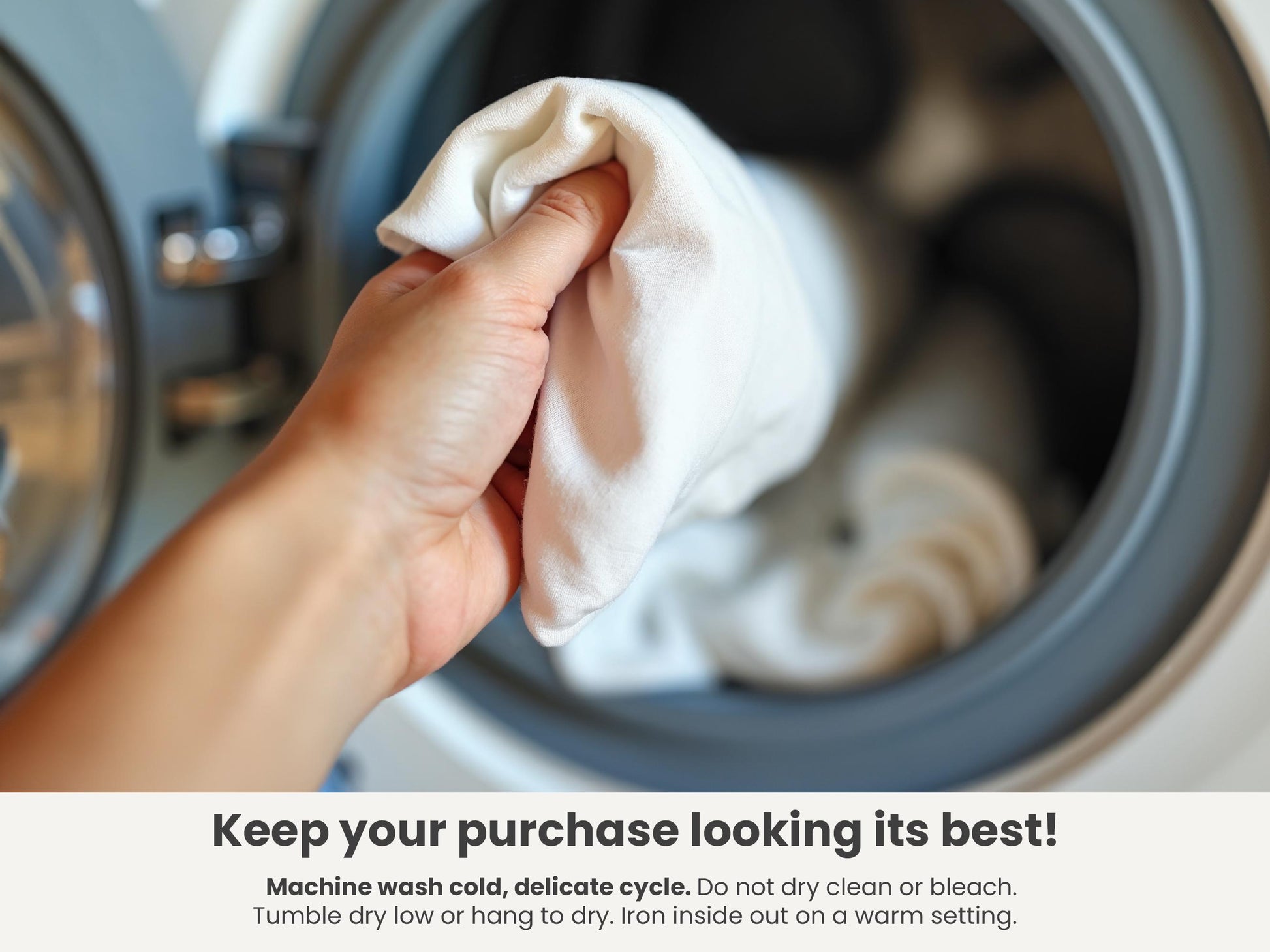 Machine wash cold delicate, tumble dry low, do not bleach